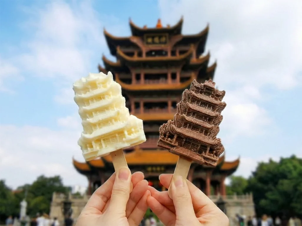 Picture this: You are standing in front of the majestic Yellow Crane Tower in Wuhan, China. The summer sun is blazing, and the humidity is thick enough to slice with a butter knife. You are desperately in need of a cold treat to beat the heat. But when you walk up to the nearest concession stand, you don’t reach for a boring, cylindrical vanilla popsicle, nor do you settle for a plain scoop of chocolate. No, you reach for a miniature, hyper-detailed, perfectly to-scale replica of the Yellow Crane Tower itself, cast entirely in frozen, brightly colored ice cream.